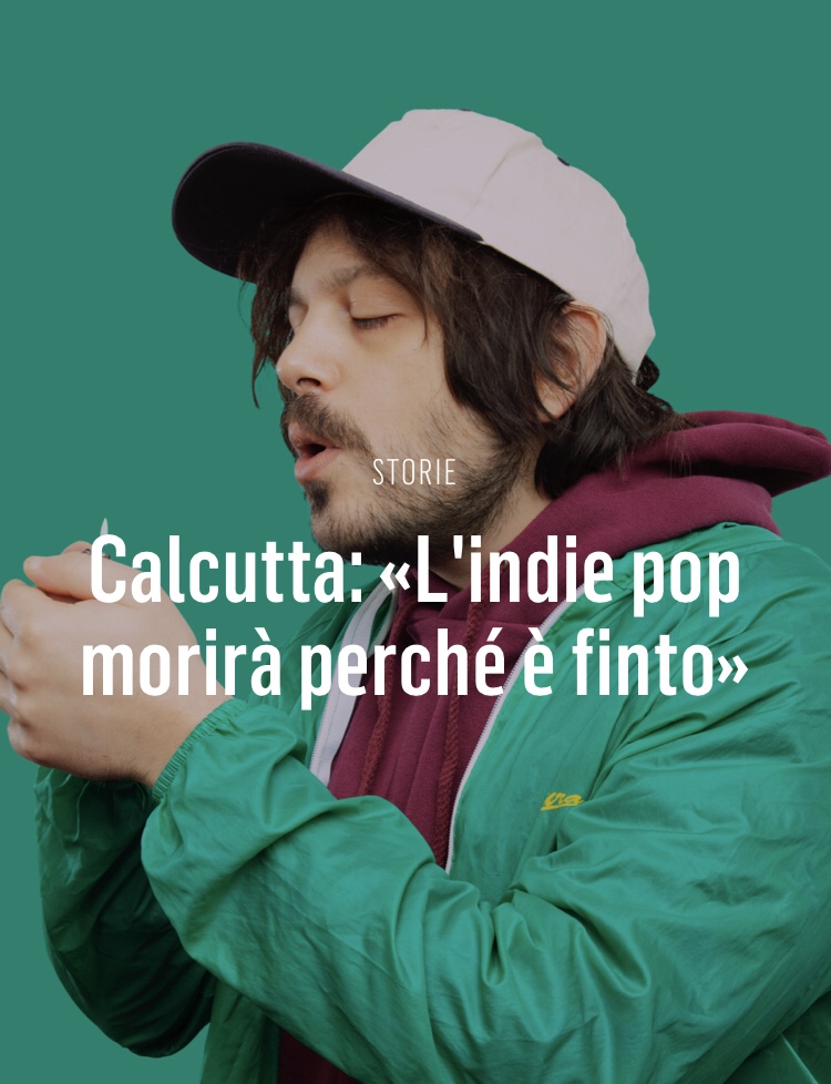 Lui è Edoardo D’Erme da Latina, in arte Calcutta, autore di versi entrati nella testa di tanti, oltre che nelle classifiche di Spotify. Per esempio: «Lo sai che la Tachipirina 500 / se ne prendi due diventa 1000» (Paracetamolo); «Mi richiamerai da un call center / E io ti dirò / Lo sai che io ti dirò / Uè deficiente / Negli occhi ho una botte che perde» (Pesto); «Suona una fisarmonica, fiamme nel campo rom / Tua madre lo diceva: non andare su YouPorn» (Gaetano), «Tutte le strade mi portano alle tue mutande» (Orgasmo). E via così, di ironia e piccoli colpi di scena che esplodono nelle sue canzoni pop. Anzi, indie-pop, definizione che a lui non piace, anche perché quando la si nomina si precisa sempre che Calcutta ne è stato il capofila, l’ariete che ha aperto la porta delle radio alla scena del nuovo pop italiano.