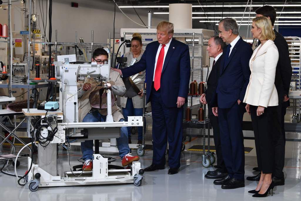 imprenditrice e personaggio televisivo (e autrice del libro Trump Card – Giocarla e vincere nel lavoro e nella vita) si è presentata all’apertura della nuova fabbrica texana che darà lavoro a 500 dipendenti con occhialoni scuri, giacca tre bottoni écru e pantaloni capri neri con scarpe décolleté a punta. Per l’occasione Ivanka Trump ha sfoggiato un hair-style che omaggia Grace Kelly, in armonia con l’eleganza timeless del tailleur bianco e nero che rende omaggio all’estetica New Look di fine anni Quaranta.