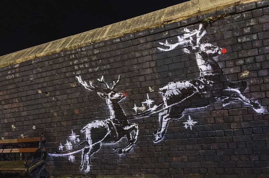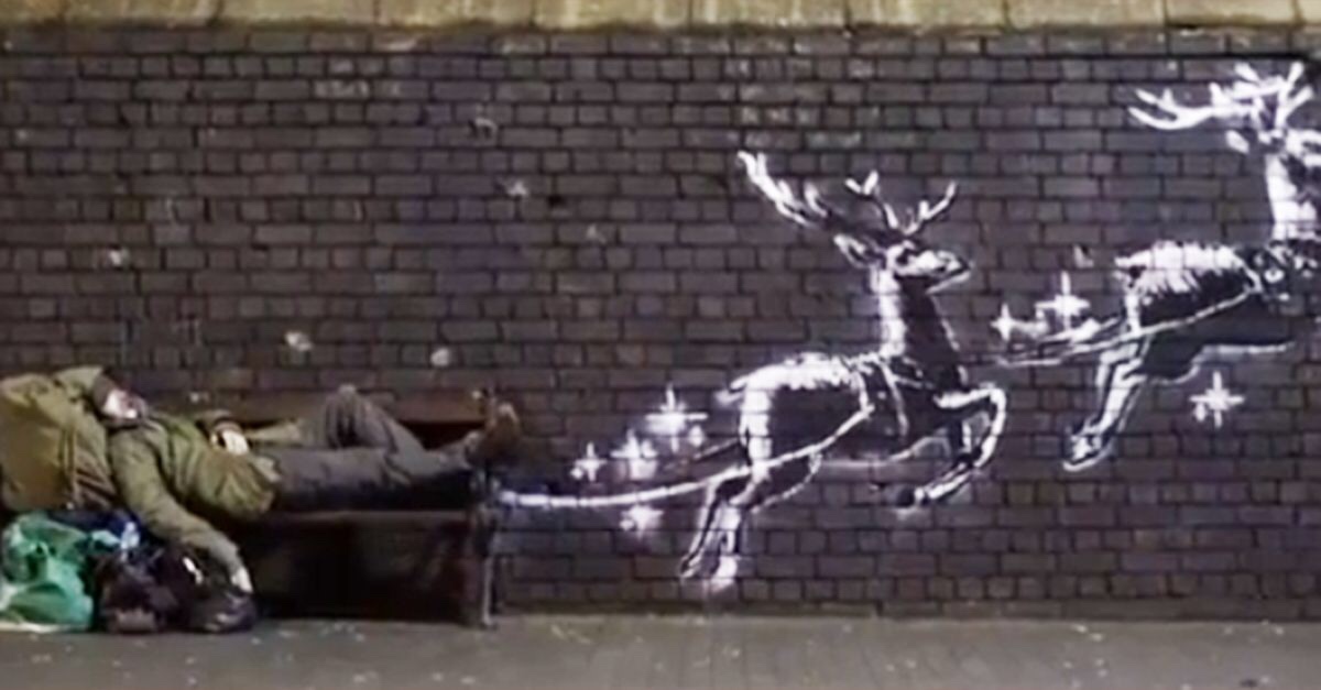 Può un clochard trasformarsi in Babbo Natale? Sì, se grazie a Banksy la sua panchina del cuore diventa una slitta, con tanto di meravigliose renne annesse, pronte a decollare verso il cielo. Lo street artist più famoso del Regno Unito è tornato a far parlare di sé proprio in questi giorni, con una nuova opera ispirata alle festività in arrivo, comparsa nella città di Birmingham. Sul muro dietro una delle numerose panchine di Vyse Street, dove i senzatetto si accampano per la notte avvolti nei loro giubbotti, sono infatti comparse due renne accompagnate da briglie e luccichio natalizio.