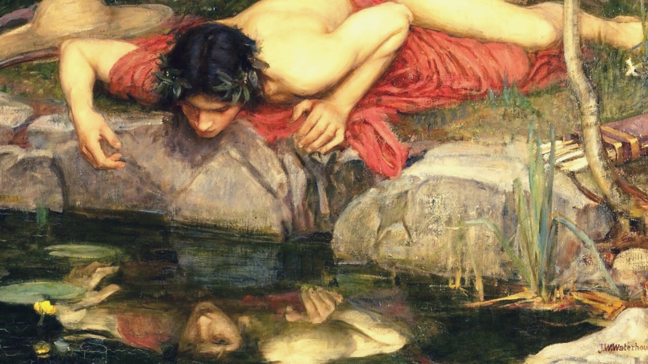 Narciso, il giovane che secondo la mitologia si innamorò della propria immagine riflessa sull’acqua.