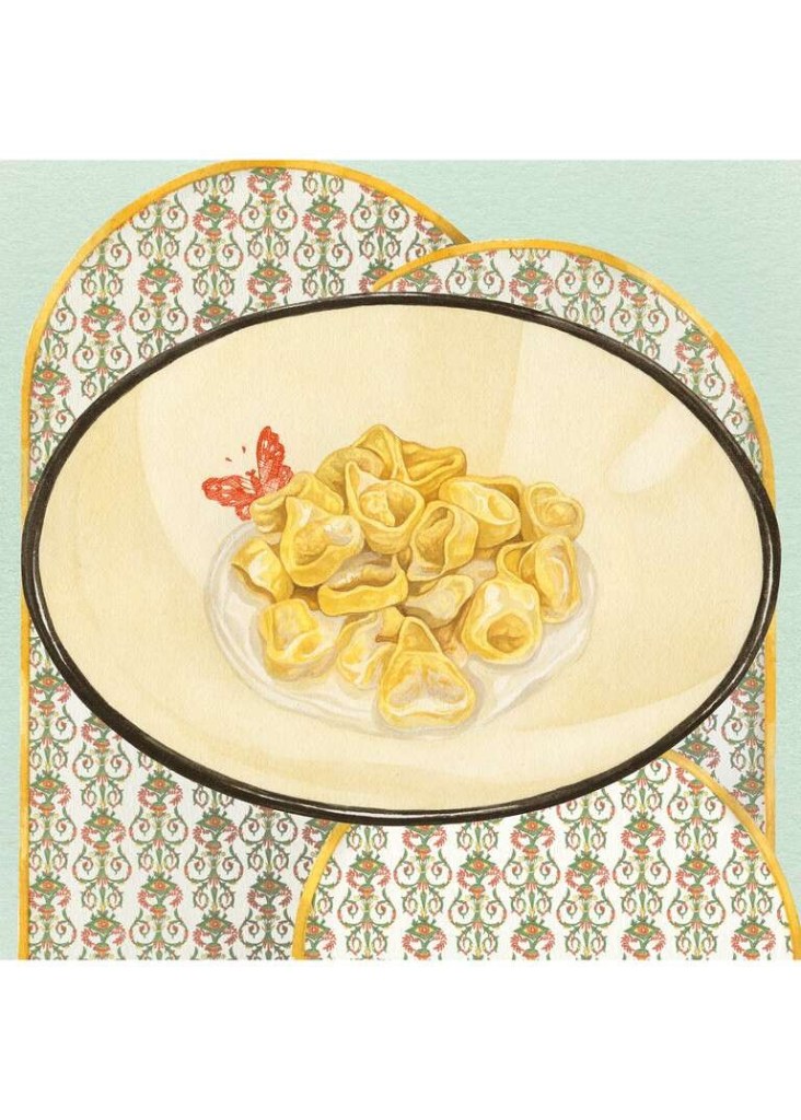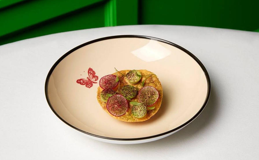 Ogni stagione il menù viene rinnovato con nuovi piatti, mentre rimangono inalterate le icone del menù del ristorante, tra cui i Tortellini in Crema di Parmigiano Reggiano e l’ Emilia Burger, un classico hamburger ricreato con ingredienti emiliano-romagnoli. Karime López ha trasmesso parte della sua storia personale nella Tostada di mais con palamita, un piatto in stile messicano con palamita marinata e mais viola tostato coltivato nel nord Italia, e nel Taka Bun, il panino cotto al vapore con pancia di maiale, un omaggio al marito giapponese della chef. L’insalata Franco’s Salad prende il nome dal commerciante toscano che rifornisce la Gucci Osteria da Massimo Bottura di insalate e di erbe locali raccolte nella campagna fiorentina. Lo Zuccotto è un risotto alla zucca servito con un ingrediente insolito, l’arancia bruciata, mentre il dessert Charley Marley è un dolce a strati di cioccolato che Karime López ha chiamato così in omaggio a Charlie, il figlio di Massimo Bottura che è un grande amante del cioccolato.