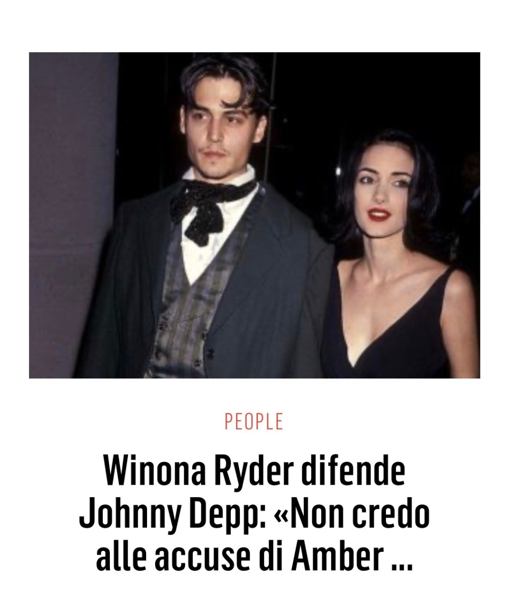 Winona Ryder e Johnny Depp sono stati insieme per 4 anni. si erano conosciuti alla prima di Great Balls on Fire a New York nel 1989 e avevano persino progettato il matrimonio (oltre a lavorare insieme in un capolavoro come Edward Mani di Forbice). «Annovero la nostra relazione tra le più significative della mia vita. e credo sia molto importante che racconti la mia esperienza».