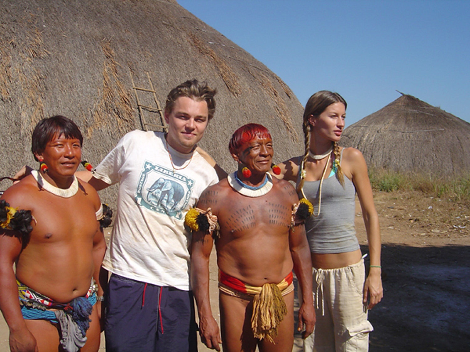 2004: con Leonardo DiCaprio e gli Xingu della foresta amazzonica (foto Ronnie Taylor/WireImage/Getty Images)
