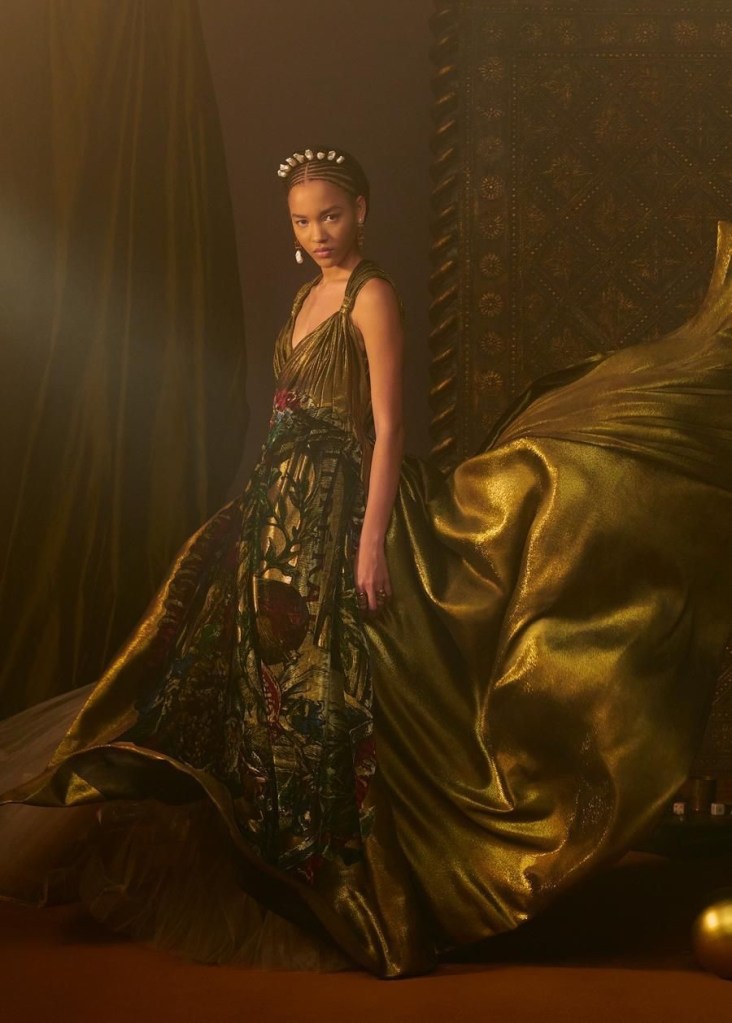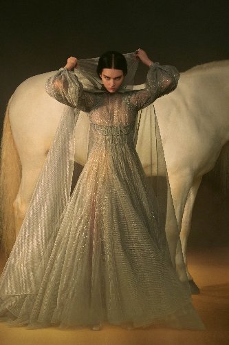 Realizza una collezione ricca di vesti ricamate, dai tessuti suntuosi come pizzi, chiffon e velluti.