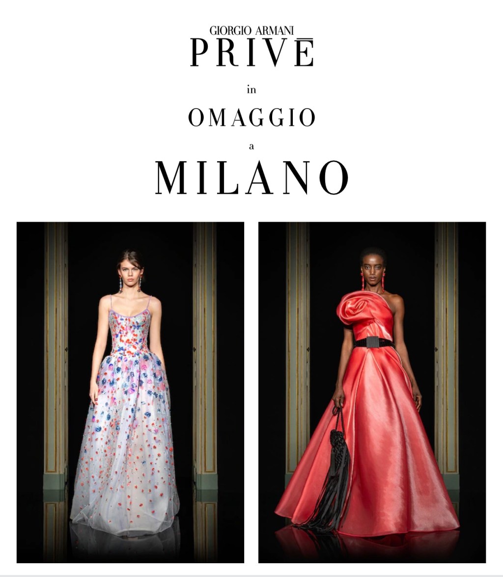 Armani è convinto che “la moda deve essere ripresa nelle mani di chi la fa”: ed ecco la scelta di Palazzo Orsini che ha acquistato nel 1996, dei suoi stucchi e dei suoi specchi sotto gli affreschi settecenteschi di Andrea Appiani, per dire al mondo del fashion in questo tempo solo virtuale quanto è bella l’Italia, quanto è bella Milano e la couture che è radicata nella storia della moda. Offrendo democraticamente al mondo intero con Internet un posto in prima fila a tutti. Certo niente potrà mai sostituire una sfilata dal vivo che resta “indispensabile”.