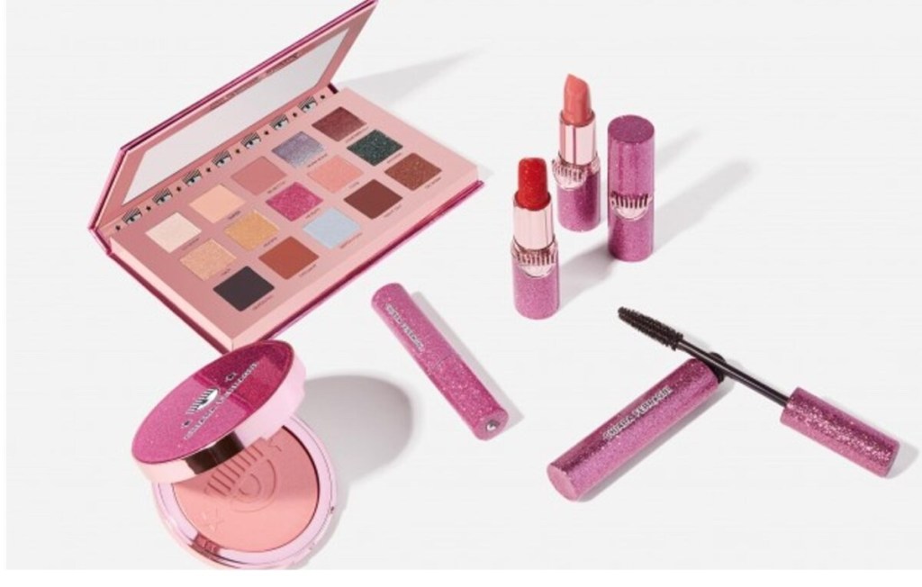 Il rosa glitterato e l’ormai famoso logo a forma di occhio – diventato una vera e propria signature di Chiara Ferragni – contraddistinguono i packaging dei sette prodotti che compongono la linea: un gel sopracciglia trasparente, una palette di ombretti, il mascara, un blush illuminante, un lipstick ‘All That Glitter’, uno ‘Workin’ Girl’ e la formula ‘Hot Mama’s’