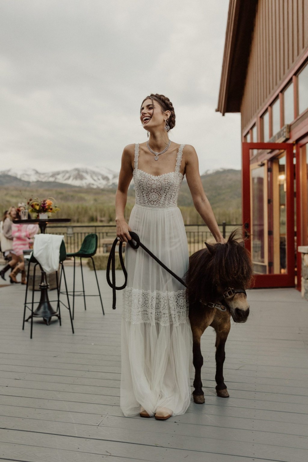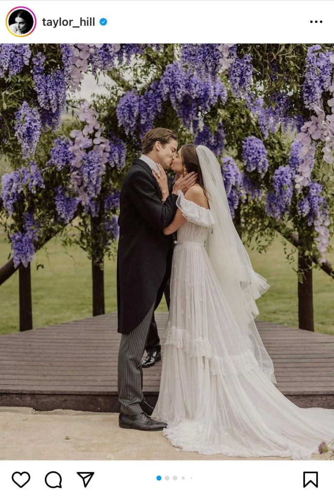 Taylor Hill e Daniel Fryer si sono conosciuti nel 2019 al JazzFest di Aspen e da allora non si sono mai più lasciati. Il fidanzamento ufficialmente è arrivato nel giugno del 2021 durante una vacanza in Italia, per la precisione a Positano, quando l’imprenditore ha fatto la proposta di matrimonio con tanto di anello scintillante con tre diamanti taglio smeraldo. È proprio in quel momento che hanno deciso di fare le cose con calma, pianificando la data e i preparativi. Lo scorso weekend il grande giorno è arrivato ed è stato un vero e proprio sogno. Complice l’atmosfera country della location, gli sposi hanno imposto agli invitati un dress code a tema western chic. Brindisi, foto tra i prati e corse a piedi nudi: le nozze bucoliche sono state all’insegna dello stile e della comodità.