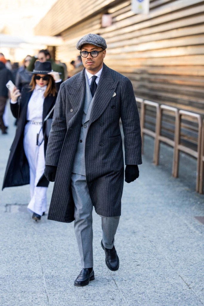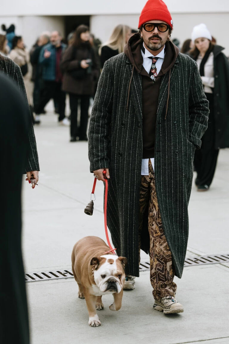 Non c’è un Pitti Uomo senza il tailoring al centro, ma quest’anno il completo tradizionale è completamente riscritto. Spalle destrutturate, pantaloni wide leg e tonalità che spaziano dal grigio al bordeaux hanno dominato. Tra gli accessori più visti, le cravatte sottili abbinate a camicie oversize, mentre i doppiopetto si portano rigorosamente sbottonati per un’aria più rilassata. A fare la differenza, come sempre, sono i dettagli: ridotti al minimo per evitare l’effetto cosplay. La consapevolezza sartoriale dell’evento di settore si traduce in cappotti lunghi dai tessuti pregiati, silhouette morbide e accenni nostalgici agli anni ’80.